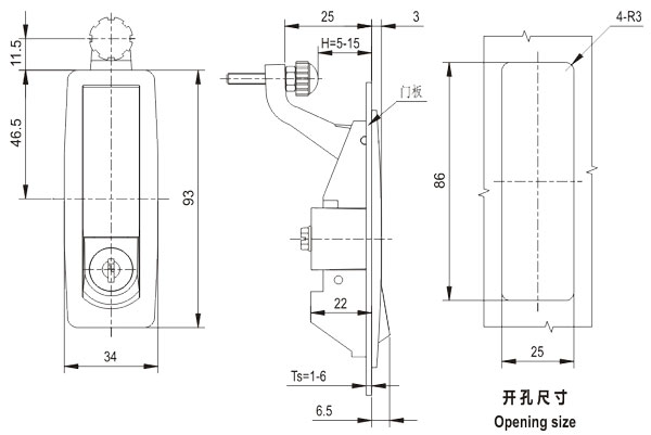 push the button and swing 90°the handle to open or lock。 |