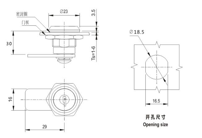 旋转90°开启或锁闭 |