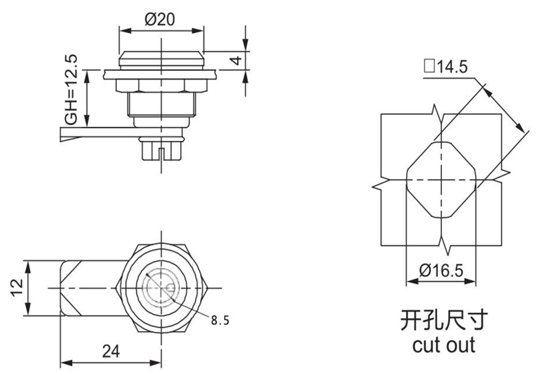 结构说明:旋转90°开启或锁闭