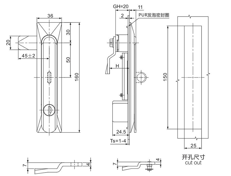 锌合金锁壳,锁芯和手柄 螺母和碳钢钢栓,带挂扣